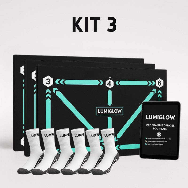 Trois tapis d’entraînement + trois paires de chaussettes de foot antidérapantes, accompagnés du e-book d’entraînement complet.